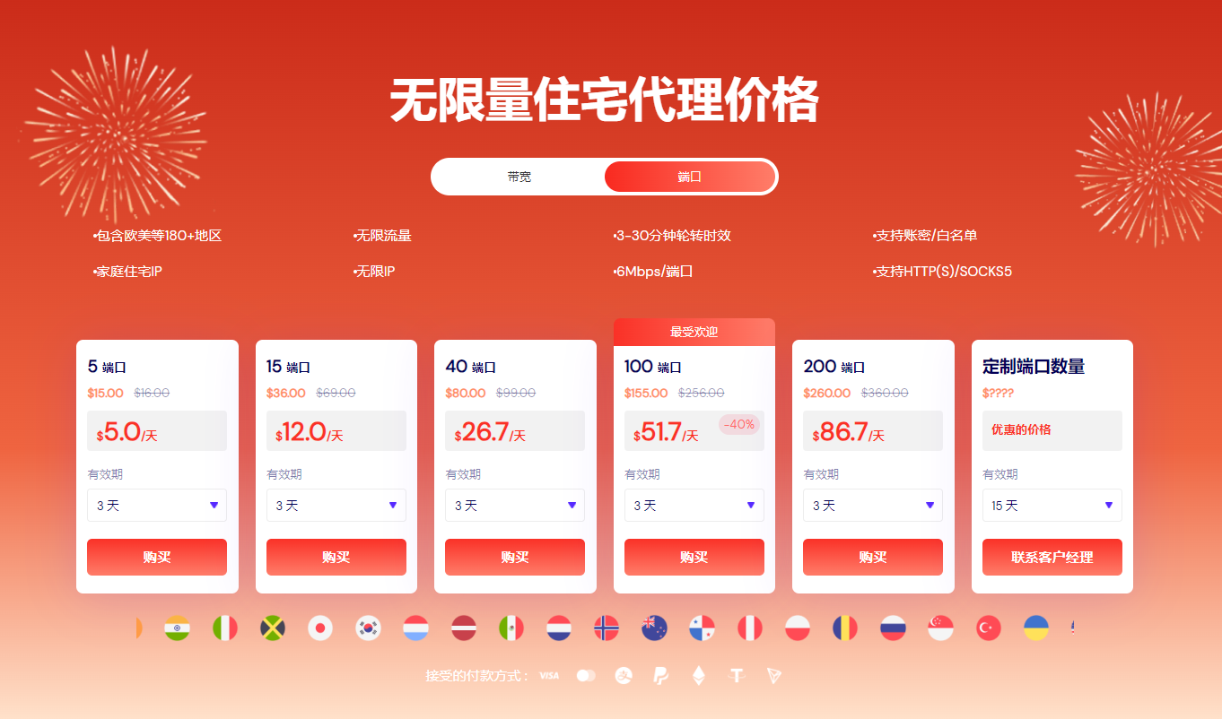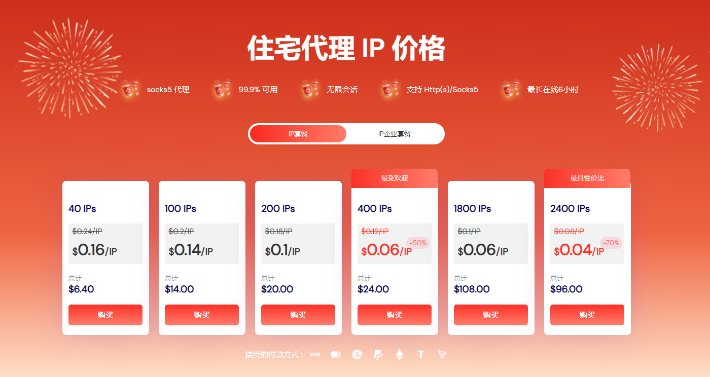 ●ISP静态住宅代理:低至$3 / 30天,优质独享纯净双ISP,不限流量,更加适合长期需要稳定IP位置的业务。