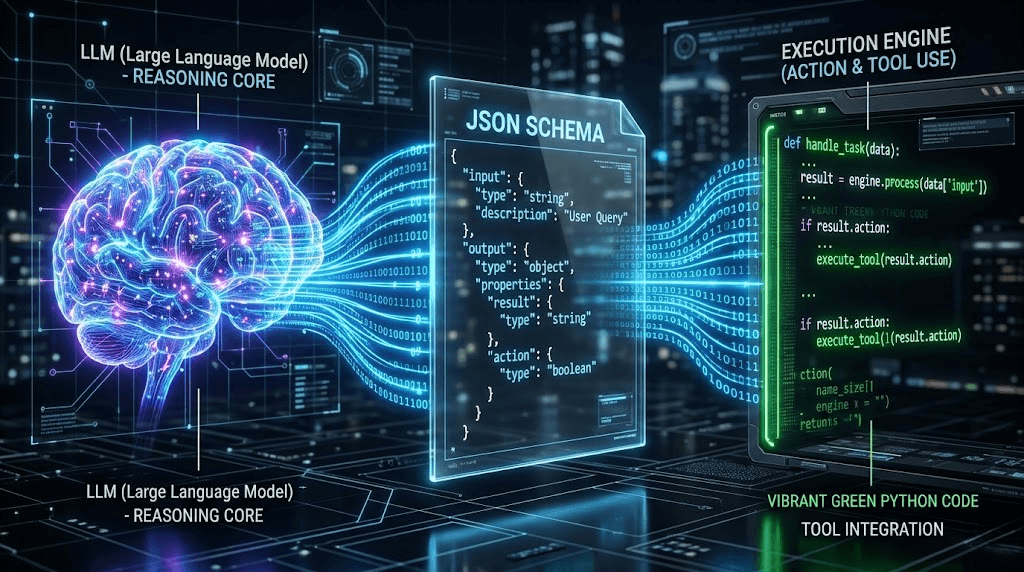 1. Tool Schema(工具描述层 - JSON/YAML): 这是写给大语言模型(LLM)看的“说明书”。它告诉 AI 这个工具有什么用、需要传入什么参数(比如 URL)。AI 只有看了这个说明书,才知道什么时候该触发你的脚本。