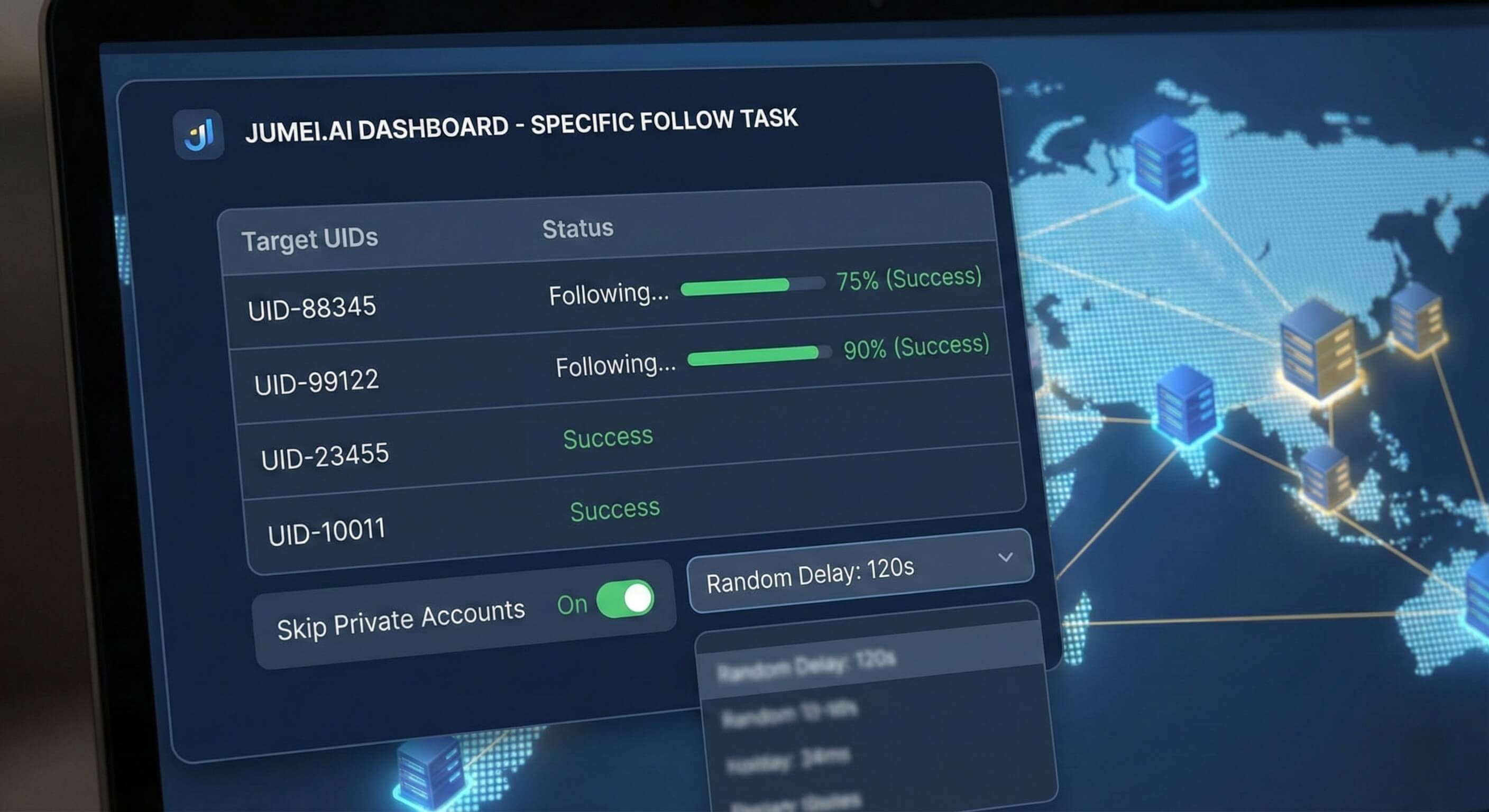 而在 2026 年,高阶的矩阵玩家都在用一种更隐蔽、更高效的战术——基于 Jumei.ai 云控系统的**“指定关注 (Specific Follow)”**策略。