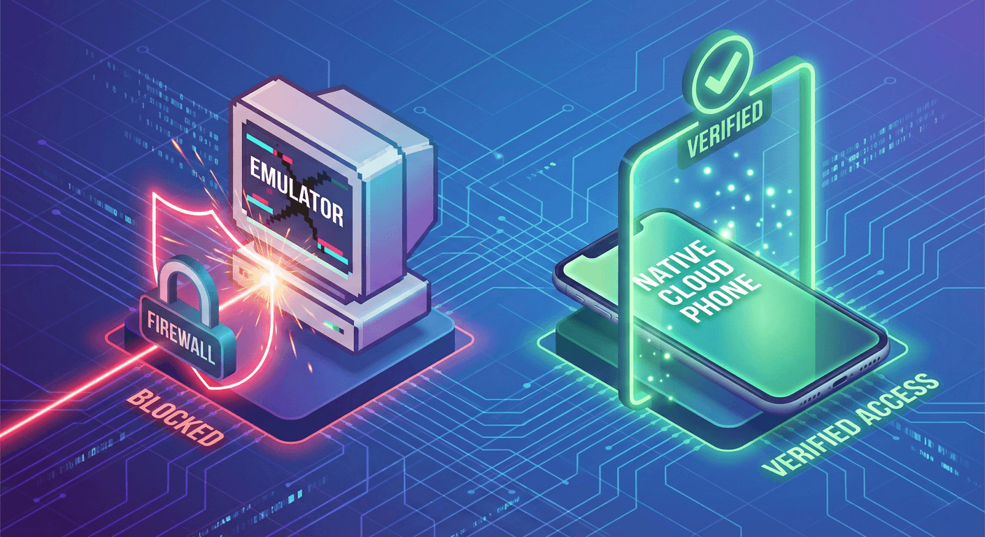 高危区:PC 端指纹浏览器、安卓模拟器 (Emulators)。这些工具缺乏真实的基带信息、传感器数据(如重力感应、陀螺仪)和 OEM 签名。一旦被识别为“非真实设备”,账号权重直接归零。
