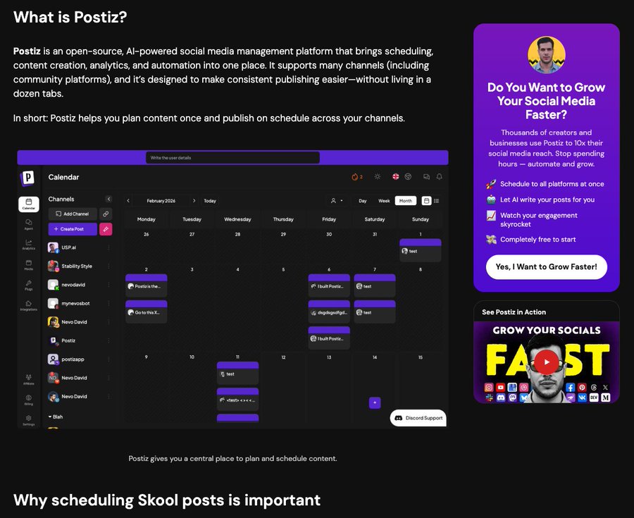 我的经典例子是这样的:Postiz 是一个社交媒体日程安排工具。我可以写一篇关于如何使用它的技能文章。但我也可以写一个类似这样的技能:如何制作病毒式传播的幻灯片。