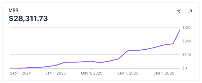 我鼓励您关注我在 TrustMRR、Metricable 以及我的个人主页上的 MRR 增长历程。Stripe 仪表盘。