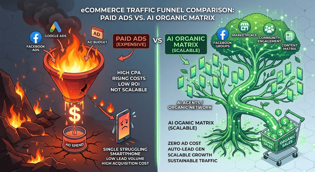 这是无数独立站卖家、亚马逊卖家在向我们咨询时的共同哀叹。随着 iOS 隐私政策的持续收紧,传统买量模式的红利期彻底终结。面对越来越贵的付费流量,跨境电商团队必须寻找第二增长曲线:Facebook 免费自然流量(Organic Traffic)。