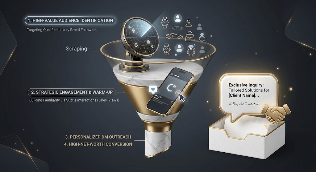 “高净值客户对‘群发机器特征’有着本能的排斥。在 Instagram 上转化一单 $5,000 的业务,靠的绝不是一秒钟发送一万条垃圾私信(Spam DMs),而是利用最高级的自动化底座,实现规模化的‘手工高定感’。”