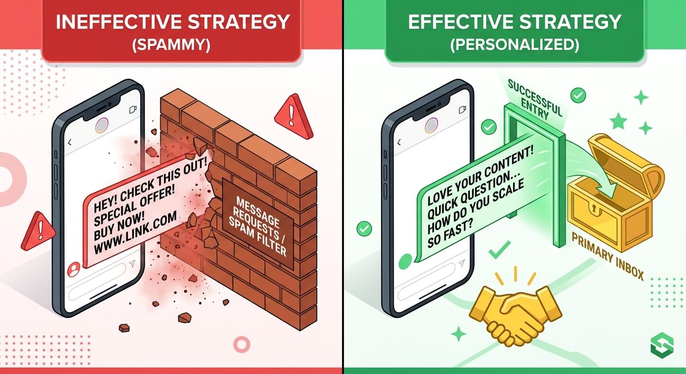 但现实很残酷:90% 的自动化私信根本进不了客户的主收件箱,而是躺在无人问津的“陌生人请求(Message Requests)”里,甚至因为话术生硬直接触发风控封号。