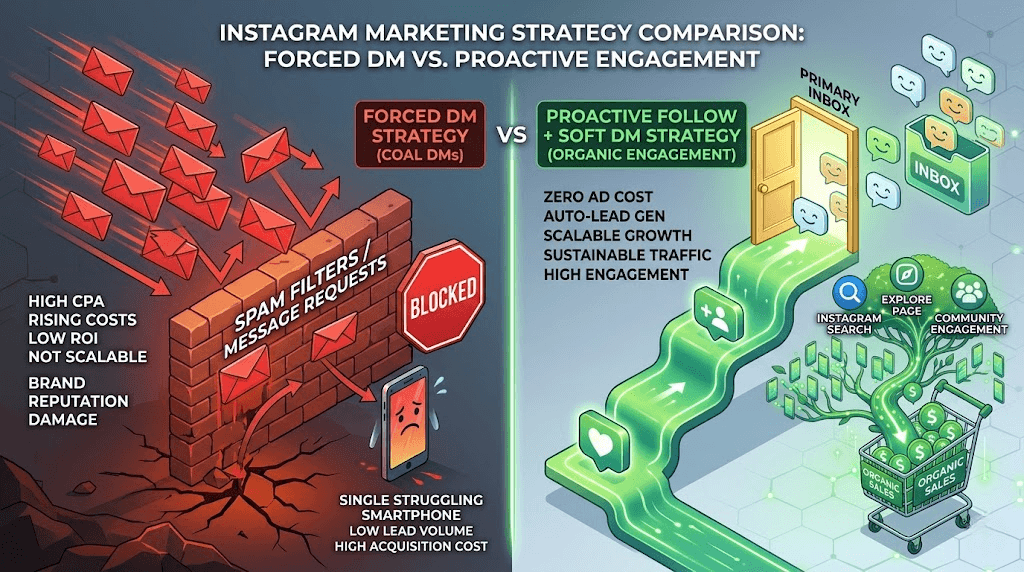 Instagram 强制私信还是主动关注?2026 矩阵引流策略选择