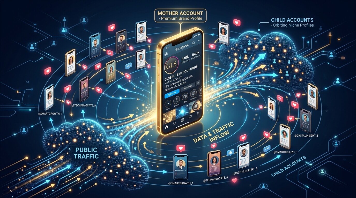 这正是 2026 年 Instagram 顶级流量操盘手们心照不宣的秘密:放弃高昂的付费广告,利用 Mother-Child(母子号)矩阵营销策略,配合 AI 自动化操作,从公域流量池中疯狂“白嫖”精准曝光。