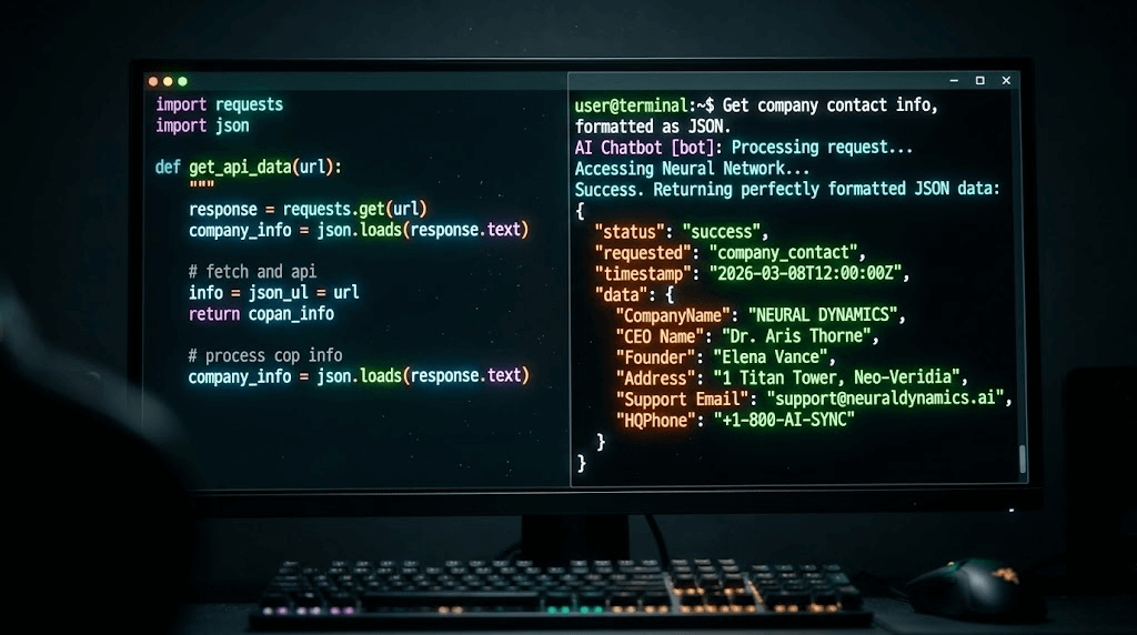 • Data Structuring: An AI agent can instantly convert messy, unstructured paragraph data into perfectly formatted JSON arrays, ready for your CRM or database.