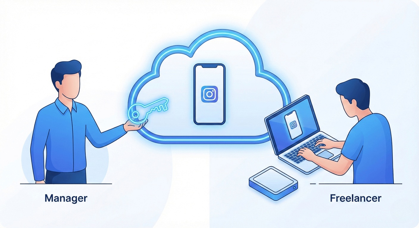 With a Remote Device, the phone lives in the cloud. You log in once. You give the freelancer access to control the screen, but they never see the password.