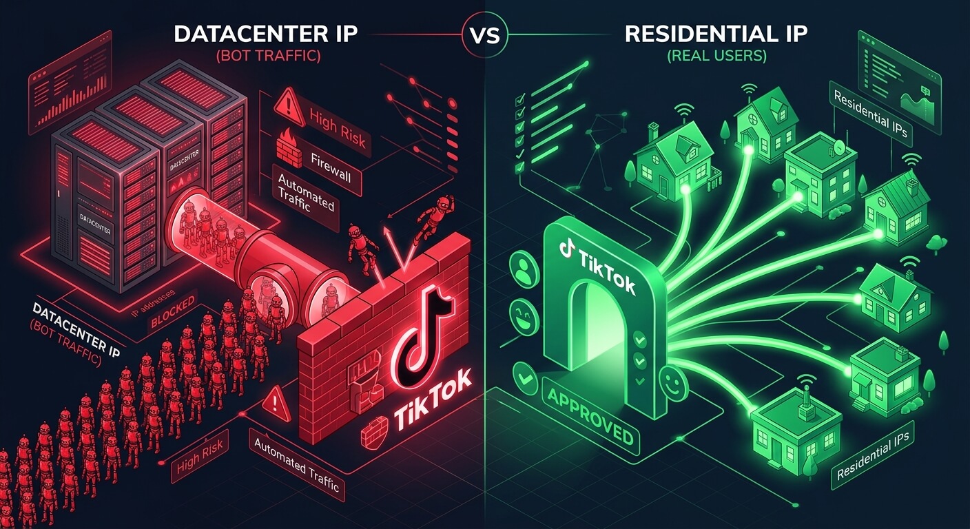 ⚠️ 核心风险透明提示: 搭建工业级 TikTok 矩阵,静态原生住宅 IP 是唯一能够长期存活的及格线。但请切记:即使使用了地球上最顶级的静态 IP,如果您用同一台设备反复切换登录 10 个账号,或者使用粗劣的脚本进行一秒钟点赞 5 次的高频自动化(Spam Engagement),依然会被风控。干净的 IP 只是拿到入场券,拟人的行为逻辑和纯净的设备环境才是最终的决胜局。