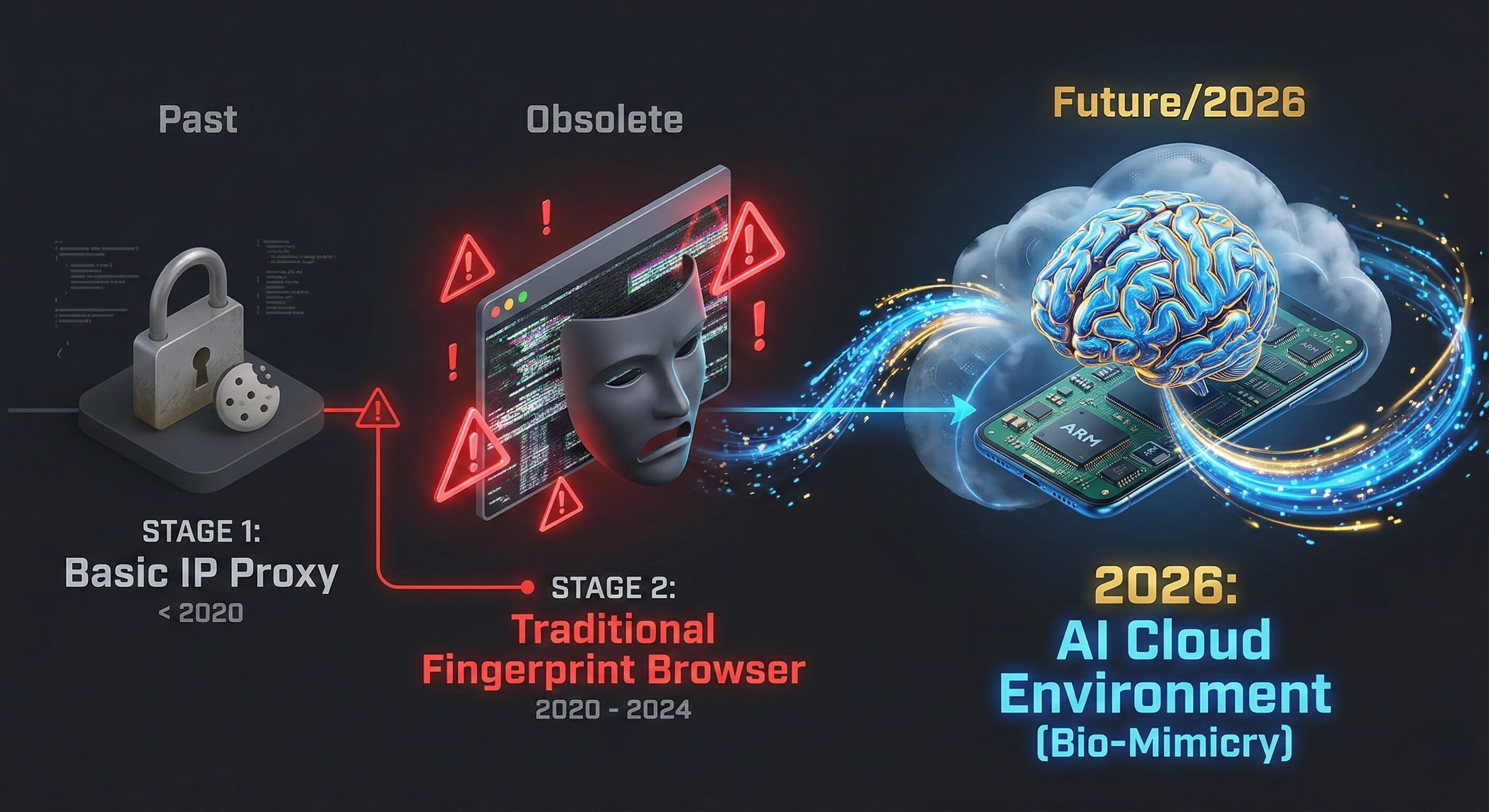 第一部分:技术演进史——为什么“传统指纹浏览器”在 2026 年失效了?